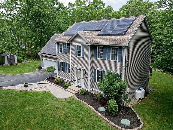 This fabulous home boasts four bedrooms and three and a half baths, including a spacious primary bedroom complete with en suite bathroom and two closets for ample storage space. The great room over the garage currently a bedroom offers a versatile living area that can be utilized as a secondary family room or entertainment space. Situated on almost three acres of private land, this property provides seclusion and tranquility while still being conveniently located near amenities. The fully paid for Tesla Solar Panels with a 7 year warranty not only reduce energy costs but also contribute to a more sustainable lifestyle. The garage comes equipped with an outlet to charge your electric vehicles as well. With its well-thought-out design and modern amenities, this home is ideal for those seeking both privacy and convenience in their living space. Make this your home today!