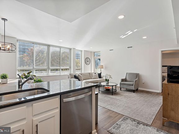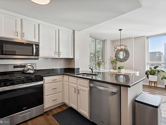 Welcome to this exceptional 2-bedroom, 2-bathroom corner unit in the heart of the coveted Southwest Waterfront neighborhood. This stunning condo offers an open and airy concept, inviting you to relish in the spaciousness and light that floods every corner of this residence. Gleaming wood floors and recessed lighting enhance the contemporary aesthetic while creating a warm and inviting atmosphere. The sun-filled living area seamlessly transitions into the stylish kitchen, featuring sleek, modern appliances and ample countertop space and cupboards for all your kitchen needs. Whether you're hosting a dinner party or simply enjoying a quiet morning coffee, this open layout is perfect for any occasion. Step out onto your private balcony to soak in the sweeping views of the city, making for the ideal spot to unwind at the end of a long day. With the convenience of an in-unit washer and dryer and included garage parking, you'll find every modern comfort at your fingertips. But the appeal of this residence extends beyond its walls. Its location is truly unbeatable. Just two blocks away, you'll find not one, but two Metro stations, making your daily commute a breeze. A mere three blocks from your front door is the vibrant District Wharf, the epicenter of entertainment, dining, and culture in the city. Here, you can enjoy a myriad of restaurants, bars, boutiques, and lively events. This prime location offers easy access to major highways and is conveniently situated near the National Airport, ensuring that all your travel needs are met. Welcome home!
