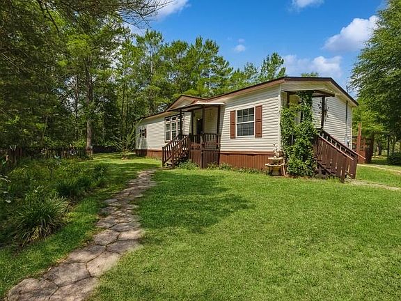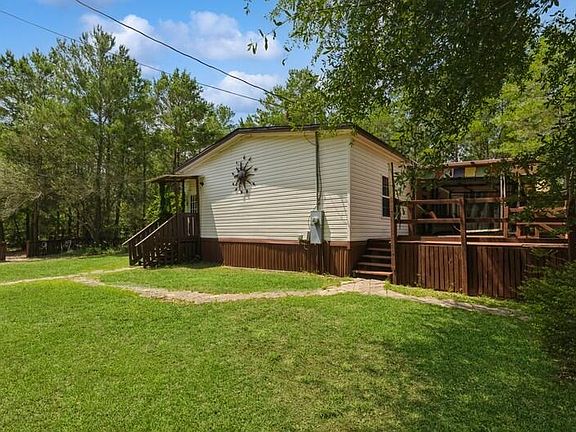 NEW PRICE! This quiet oasis is located just off Hwy. 90 & only a short drive to Defuniak Springs, Crestview, I-10, Niceville, military bases & sugar-white, sandy beaches! This eclectic property features a open-concept, modular home nestled on 2 level, wooded acres, fully-fenced & gated...complete w/new roof installed May 2024 that includes a 5-year workmanship warranty per contractor...the 50' boardwalk meanders from the covered back deck through the shade trees to a sparkling above-ground pool...3 firepits on the grounds...artist's studio & three workshops...ceiling fans...recessed lighting...ornamental fish & toad pond! Lots of space for gatherings! Washer & dryer convey with the property!