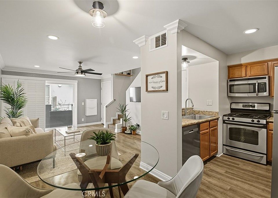 Welcome to this stylish, move-in ready condo set on a tree-lined street in Burbank’s highly sought after Media District. This one-bedroom, two-bath condo stands out with a clean design, subtle industrial-inspired accents, and a bright, open layout. The kitchen features granite counters, stainless steel appliances, and a breakfast bar that flows into the dining and living areas. A distinctive downstairs half bath adds flair with bold hex tile floors and floating vanity, while sliding doors, off the living area, lead to a private balcony—perfect for indoor/outdoor living. Upstairs, enjoy a spacious bedroom retreat with en-suite bath and walk-in closet, plus updated vinyl plank flooring throughout. Additional highlights include a newer AC system and an impeccably maintained interior. Community perks include a gym, spa tub, BBQ area, and secure parking. Close proximity to Magnolia Park shops, Toluca Lake restaurants, the studios and the Burbank airport. This home has it all where style, comfort, and thoughtful design come together. Welcome home!