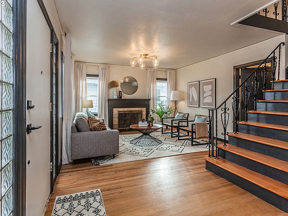 Super stylish gem of a house in Montavilla features newly refinished hardwood floors, circular main floor layout w formal dining room. Fabulous new lighting in LR, DR and kitchen. Updated counters and flooring in kitchen. New dishwasher and range. Bedroom/office on main and four large bedrooms upstairs. New 200 amp electric panel, new insulation, freshly painted inside and out. High ceilings in basement. Backyard full of potential and large detached garage! [Home Energy Score = 1. HES Report at https://rpt.greenbuildingregistry.com/hes/OR10195447]
