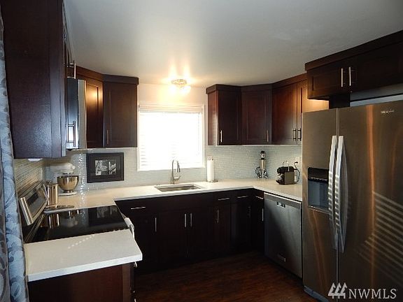 Great unit in Ballard! Newly updated with laminate hardwood flooring throughout. New cabinets with quartz counter tops in kitchens. Stainless appliances. Top unit has deck and second unit has sun room. Each unit has washer & dryers. Fireplaces in both units. Nice tile in both master and main bath. Plenty of parking. Small gated front yard perfect to let the dog out. This is a great building!