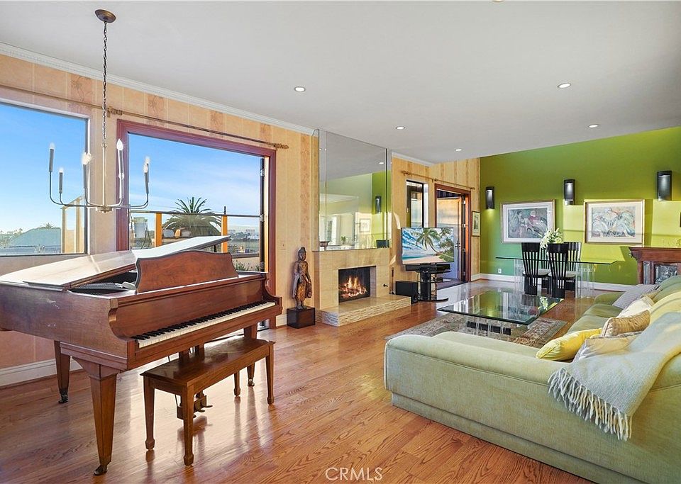 Enjoy ocean, city, and mountain views in the heart of Playa del Rey! Step into this sophisticated two-story townhome-style condo with soaring ceilings, rich hardwood floors, excellent balcony views with complete serenity, and a naturally lit living space with a gas-burning fireplace. The spacious chef's kitchen boasts marble countertops, stainless steel appliances, a wet bar, and custom cabinetry. Upstairs offers a spacious en-suite primary bedroom with a private balcony with expansive ocean, city, and mountain views. Additionally, this home provides a secondary ample-sized bedroom, plus a “work-from-home” loft or possible 3rd bedroom, 2 side-by-side parking spaces, & extra secured storage adjacent to the parking spaces. Don't miss this opportunity to live in one of the most desirable areas in Silicon Beach. Walking distance to nearby amenities such as shopping, bars, bike paths, restaurants, and the beach.