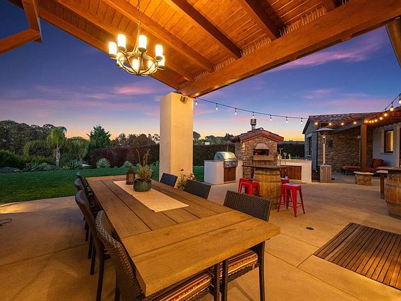 Located in the historical center of Olivenhain, this beautifully crafted SINGLE LEVEL custom-built family compound with a 5 bed + 4 bath main house and 1 bed + 1 bath guest suite is not to be missed! This legendary property has been awarded the highly coveted designation of a California Advanced Energy Efficiency Home and boasts gorgeous custom Quartzsite countertops, the finest European stones, superior chef’s kitchen w/ separate working kitchen, commercial grade appliances, designer baths - solid wood cabinets/windows/doors, soaring open beam ceilings, solid core 8’ interior doors, spa suite primary bedroom and bath with walk-in shower, Bain Ultra Tub, hydronic floor heating, wood floors with cork sound barriers, 28 owned solar panels, 1000sf basement, 550 gallon fresh water storage tanks, rain water collection system, RV parking with cleanout, glorious sun-filled outdoor spaces highlighted by spectacular custom pavers, a wood fired pizza oven, outdoor wood-burning fireplace, jacuzzi, dry sauna. 5 car garage, A + rated schools and SO much more! Rarely do you have the pleasure of owning a home this well built, exceptionally maintained, and with so much love and attention to every detail! Lemon, orange, fig, peach, persimmon, tangerines, apricot, pomegranate and avocado trees!
