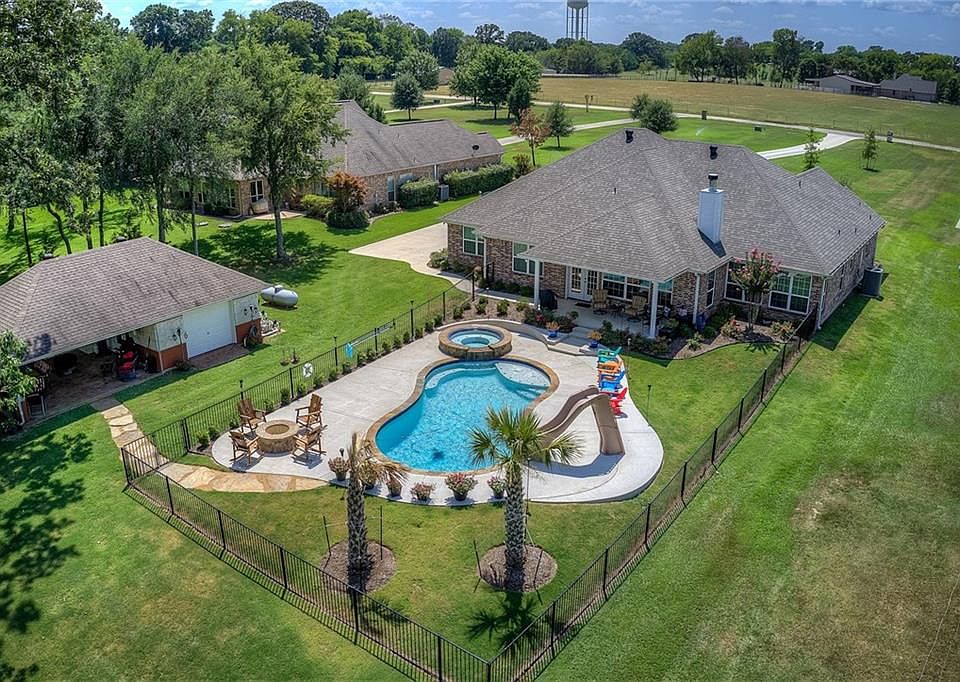 MOTIVATED! Lake Fork Custom, 2 Years Old, Highly Desired Pinson Springs Neighborhood-Open Concept Living with Luxury Detail, Split Bedrooms, Lovely Master with Lake Views, Designer Closet with Built In Drawers, Beamed Living Room with River Stone Fireplace. Kitchen is Highly Upgraded with Blue Tooth Vent-hood, Stainless Appliances, Granite, Lots of Work Space and Huge Walk In Pantry. Outdoors to the Backyard Oasis, Salt Water Pool with Hot Tub, Skid Proof Water Slide, Gas Fire Pit, Child Privacy Wrought Iron Fence, Extra Game Room or Man Cave with Outdoor Kitchen and Seating Area, Kids Playhouse, Down to Lake to find Double Boat House with Lifts, Fishing Deck and Cleaning Station. Lake Pump fed Sprinkler System