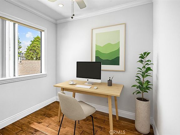 Located in the highly desirable neighborhood adjacent to Pasadena's prestigious Madison Heights, this beautiful third-floor 1-bedroom, 1-bathroom condo with a bonus room that can serve as an office or potential second bedroom offers modern comfort, functionality, and style. Step inside to a bright, freshly painted interior featuring laminate wood floors that flow through the spacious living area. The inviting living room opens to a private balcony overlooking the peaceful neighborhood perfect for morning coffee or evening relaxation. The thoughtfully designed floor plan separates the enclosed kitchen from the living area, creating a comfortable and efficient layout. The kitchen comes equipped with a refrigerator, induction range, and convection oven, making it as practical as it is stylish. Down the hall, you'll find ample storage with a linen cabinet and a double-door closet. The main bedroom enjoys great natural light through a large window with a pleasant neighborhood view, while the bonus room provides a versatile space ideal for a home office, guest room, or creative studio. The full bathroom features a shower and separate tub combination, an oversized single-sink vanity, and ceramic tile flooring for a clean, timeless feel. Residents of this well-maintained building enjoy access to a beautiful courtyard with picnic tables, seating areas, and communal barbecues. Additional amenities include a clubhouse recreation room, gym, sauna, and community laundry facilities. Perfectly situated near shopping, dining, and entertainment, this exceptional condo offers the best of Pasadena living combining comfort, convenience, and versatility. The furnished photos are virtually staged.
