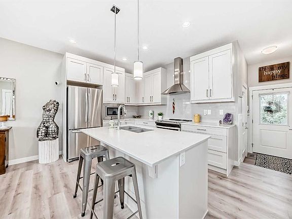 High ceilingsCrisp white kitchenQuartz-topped countersIsland with seatingPremium finishesSpacious primary suiteWalk-in closet