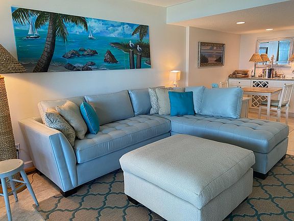 Beautiful beachside condo on south Hutchinson Island available for rent. 2 bedroom, 2 bath, chef's kitchen, granite counter tops and butcher-block kitchen island. Condo is completely furnished and updated with clean, comfortable coastal decor.