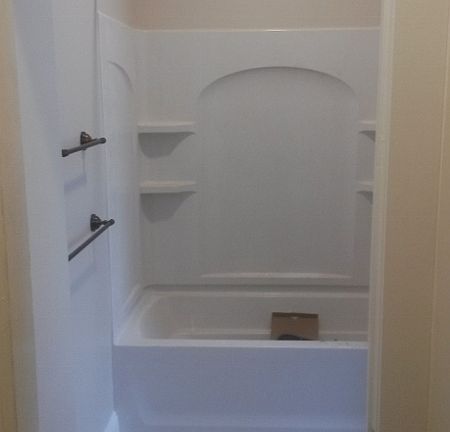 Bathtub/shower combination, granite top large vanity. Hot water usage is