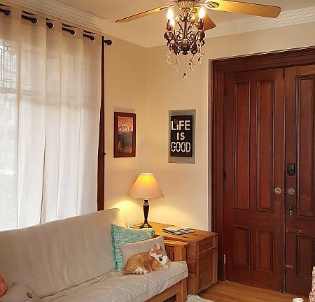 Beautiful crown molding and high ceilings with classic hardwood throught trim.