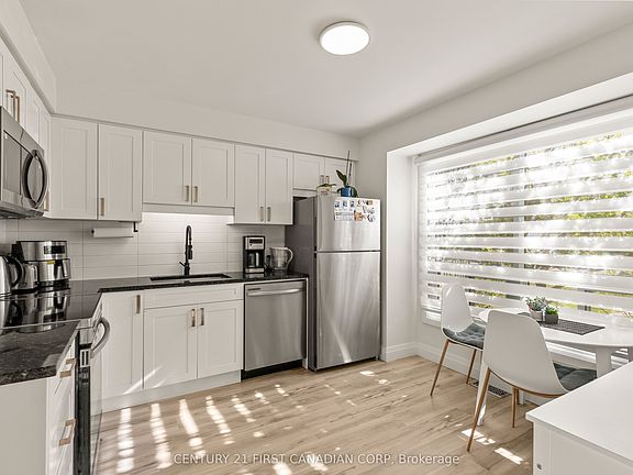 This townhouse stands out for its model-like condition and contemporary detail throughout. A rare offering with four (4) bedrooms, two (2) modern full baths and a powder room; it features continuous flooring across all levels. The main floor includes a bright eat-in kitchen with shaker cabinets, granite counters and four stainless steel appliances. The lower level adds a fourth bedroom, a striking full bath, and spotless storage. An updated HVAC system with gas furnace, central air, and Ecobee Smart thermostat enhances comfort and efficiency. Amenities include basement laundry with top loading washer and dryer, exclusive parking + visitor spots close to the unit and a paved fenced-in courtyard. Location is about five minutes to Victoria Hospital and Parkwood. Partially furnished, with many of the pieces shown included, this townhouse invites you to step into a space where everything is already in place - refined, modern, and impeccably cared for.