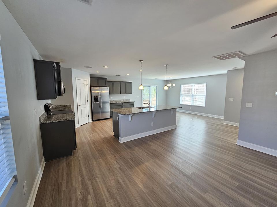 The open kitchen is a standout feature, complete with a large island, ideal for cooking, entertaining, and casual dining. A Rinnai tankless water heater provides the added benefit of endless hot water, while the two-car garage offers convenience and additional storage.