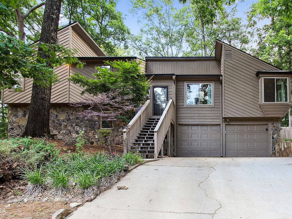 Lovely Contemporary in awesome Roswell location close to everything! Updates throughout with new carpet upstairs and freshly painted. Hardwoods on main. Roof, HVAC and fence are all less than 3 years old! Kitchen with granite countertops. 3 closets in the primary bedroom! 2 other bedrooms upstairs. Downstairs is large den with a separate bedroom/office and full bath. Laundry room. Oversized deck and usable back yard. Loads of natural light. Active and social swim/tennis neighborhood with park, playground, clubhouse, Jr olympic pool with diving pool and baby pool. Alta tennis teams, summer swim team, pickleball court, lighted tennis courts. Walk to Big Creek Greenway. Close to shopping, houses of worship and private schools. Convenient to downtown Roswell, Alpharetta, Avalon and Halcyon.