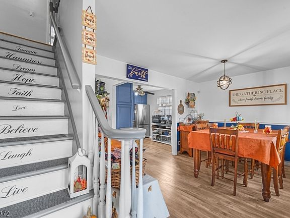 Beautiful Bi-Level Home in Desirable Brookdale, Bloomfield, NJ!Welcome to this charming bi-level located in the sought-after Brookdale neighborhood. The first floor features a warm, country-style kitchen with easy access to the dining area perfect for entertaining! A formal dining room, convenient powder room, and sliding doors leading to a spacious deck completes this level.Upstairs, you'll find four generously sized bedrooms and a full bathroom, offering plenty of space and comfort. The finished basement provides additional living space ideal for a home office, recreation room, or guest area just bring your imagination!Enjoy outdoor living on the deck overlooking your private backyard oasis. This home offers both comfort and convenience, situated close to mass transit, parks, shops, and the train station a commuter's dream!
