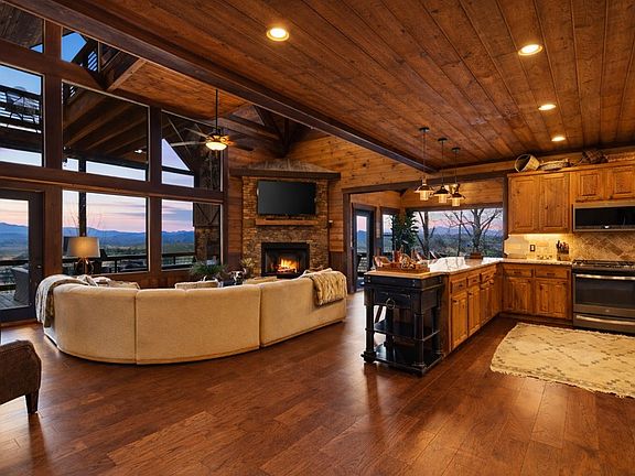 Long-range mountain viewsOpen-concept floor planOversized hot tubMultiple entertainment spacesTotal of four fireplacesToccoa river accessConvenient laundry