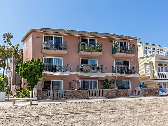 Walk or Bike to All that Mission Beach has to offer. Located between the Mission Bay Yacht Club and the Aquatics Center. Full Views of Sea World Fireworks. Oversized Patio with sitting area and BBQ that opens directly to the sand. Corner unit. Large Private patio. Large parking