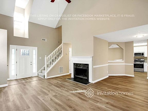 Home Features and Amenities: Air Conditioning, Fireplace, Granite Countertops, Long Lease Terms, Luxury Vinyl Plank, Patio, Pet Friendly, Smart Home, Stainless Steel Appliances, W/D Hookups, and professionally managed by Invitation Homes.