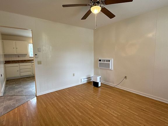 Window above the sinkNew paintTwo dedicated parking spacesMatching major appliancesClassic white cabinetryWindow ac unitBaseboard heaters