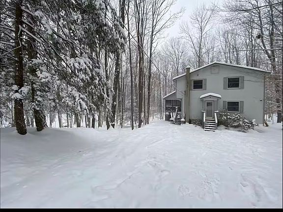 Pristine Chalet . .. . Set backward on end of cul de sac on over 1/2 acre of wooded lot. With lots of glass to enjoy the view . More then 100ft of off road privacy . . Central Heat. .. .Andersen Windows, new appliances. All furnished if you prefer. Private community with pools, ski slopes, etc.