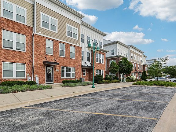 Welcome to this beautifully upgraded 3-bedroom, 3-story corner unit townhome that perfectly blends style, comfort, and convenience. A charming covered front porch invites you inside to a bright, airy foyer and a versatile living room/office space, complete with a modern barn door. Engineered hardwood floors flow throughout the main living areas, creating a warm and contemporary atmosphere. The inviting family room showcases large windows that fill the space with natural light, recessed lighting, a cozy fireplace, and access to a private balcony.The spacious kitchen features an oversized island, custom backsplash, and a separate dining area full of charm-ideal for gatherings and everyday living. Upstairs, the primary suite impresses with a shiplap accent wall, tray ceiling, plush neutral carpeting, and a spa-like bath with dual vanities, an oversized glass shower, and a massive walk-in closet. Two additional bedrooms offer generous closet space and share a beautifully appointed full bath. Convenient second-floor laundry adds to the home's functionality. Located in the desirable Uptown at Seven Bridges community with highly acclaimed Downers North High School. Easy access to shopping, dining, golf, and entertainment. Schedule your tour today!