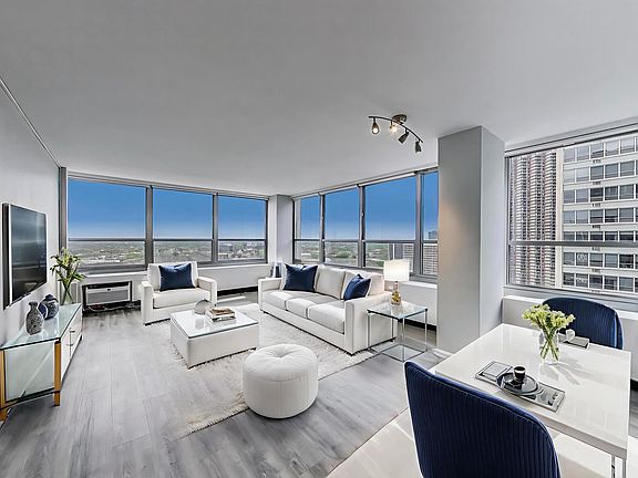 Urban Oasis in the Sky | Coveted Corner Studio-Experience elevated city living in this completely renovated, spacious corner studio condo, perfectly positioned to capture stunning sunset views along with sights of Wrigley Field, lush parks, and the shimmering lakefront. Flooded with natural light from wall-to-wall wraparound windows, this bright and airy home offers an unmatched sense of space and serenity-your private urban oasis in the sky.The updated kitchen is a chef's delight, featuring quartz countertops, stainless steel appliances, and ample cabinetry for style and function. Enjoy generous storage throughout, including a coveted walk-in closet.Located in a full-amenity building, residents enjoy: 24-hour door staff On-site commissary Fitness center Garage parking leased Laundry facilities Dry cleaners Storage & library Expansive sundecks with panoramic city and lake views Convenient to everything you love: the park, tennis courts, golf course, running/bike paths, and the lakefront-right across the street.