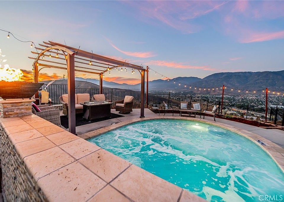 Sparkling city lightsLarge center islandCustom cocktail poolGas firebowlsOpen concept layoutTotal privacyMaster suite
