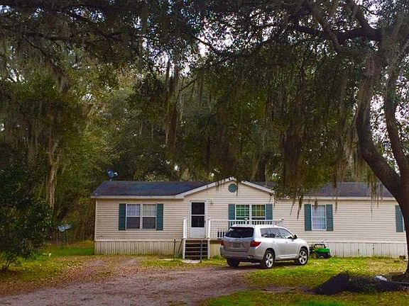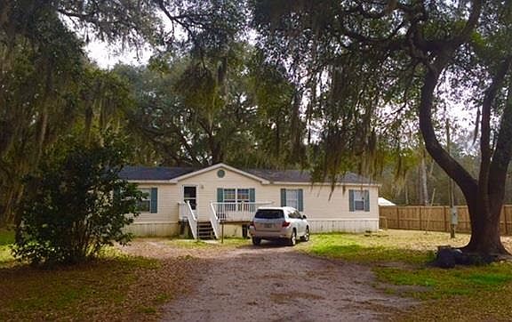 Enjoy the country like setting yet close to I95, shopping, town and the river. This large lot features beautiful Oaks, fruit trees and blooming azaleas. The 3b/2b mobile home includes a family room with fireplace and laminate flooring through out except carpet in the bedrooms. The back door opens up to a large private completely fenced yard. Great school district ,golf and convenient shopping and restaurants near by. Easy to show with some notice.
