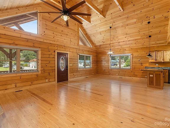Incredible investment opportunity in the heart of Maggie Valley. Log home is set up for residential use and commercially zoned if the opportunity is needed. Log home in great condition built in 2020 and immaculately taken care of. Rear of the property is privacy fenced with a covered porch for gathering, playing lawn games, barbecuing or relaxing. Very easy year round access on the main state/city maintained road through Maggie Valley, makes it a great ski season rental or weekend destination. Centrally located with sidewalk access to Maggie's shops, restaurants, putt putt, trout fishing, MV Festival Grounds and much more. Just a short drive to Waynesville, Blue Ridge Parkway, GSMNP, Cherokee, Interstate 40 and more. Property is in the 500 year flood with a very small corner of the lot in the 100 year flood.