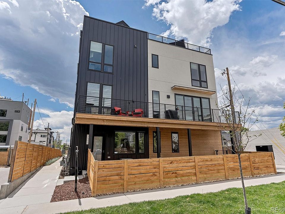 END UNIT with fenced yard, full length deck and huge rooftop patio! Lower level space is large enough to be small work space or work out are! 3 blocks from Sloans Lake! Enjoy the outdoors in your maintenance free, private fenced yard and spacious main floor deck, or enjoy the stunning views of both the mountains and Denver skyline from your rooftop patio! Beautiful great room concept main floor with floor to ceiling windows. Top notch finishes throughout. Truly a rare find with this combination of outdoor living spaces and just a 5 minute walk to the lake, local eateries and Sloans Lake Bazaar.