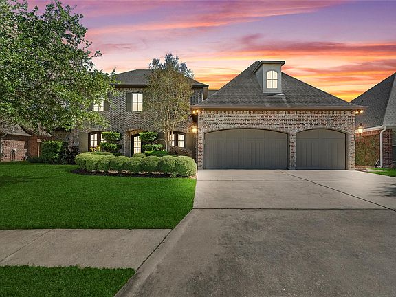 Welcome to your private backyard oasis in beautiful Barrington Heights! This stunning 5-bedroom, 4.5-bath home offers elegance and comfort, featuring a sparkling pool and spa surrounded by lush landscaping and a covered patio for year-round enjoyment. Inside, the bright open floor plan showcases soaring ceilings, custom millwork, and a chef’s kitchen with granite counters, stainless appliances, and a large island overlooking the living room with gas fireplace. The primary suite is a relaxing retreat with a fireplace, jetted tub, dual vanities, and walk-in closet. Upstairs you’ll find three bedrooms, a Jack & Jill bath, a media room with bar, and a game room with access to two finished attic spaces for storage. The first-floor guest suite adds flexibility for multi-generational living. A spacious 3-car garage is large enough to accommodate up to 21-ft boat. Conveniently located near ExxonMobil, Christus Health, Baptist Hospital, and Lamar University—close to shopping, dining!