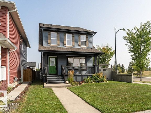 Welcome to this beautifully maintained two-story in Tamarack, where upgrades and thoughtful design make every day easier. A corner lot offers extra parking, a 20’x22’ alley access garage, gated RV space, a large deck, and plenty of room to play. Inside, maple hardwood floors, a cozy three-sided fireplace, and added sunlit windows create a warm atmosphere. The kitchen shines with ceiling-height cabinetry, numerous upgrades and newer stainless steel appliances. Upstairs, two primary suites each feature walk-in closets and tiled 4-piece ensuites, and a tiled laundry room with floor drain. The partially finished basement holds potential for three more bedrooms and has rough-ins for an additional full bathroom and laundry room complete with a sink. Steps from A Blair MacPherson Elementary/Jr. High and close to the Meadows Rec Centre, it’s a private sanctuary in a vibrant, family-friendly community.