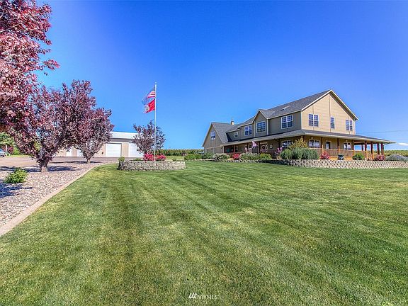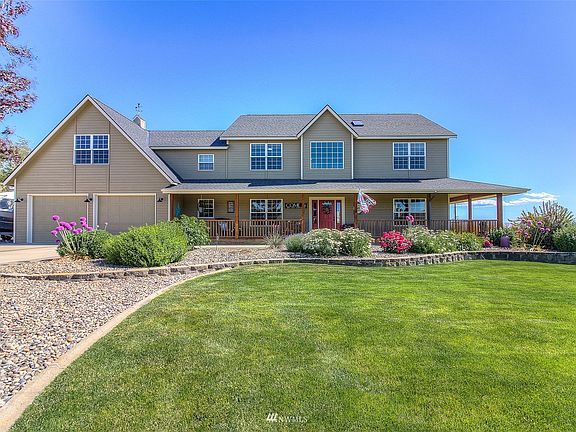 Zillah home w/ spacious wraparound porch and covered patio sitting on almost 10 acres. It has a spectacular view of the valley, orchards, vineyards, and Mt. Adams. Property includes 3 1/2 acres of producing Robada Apricots, 4 acres of pasture with grass hay, and a large lawn with professional landscaping all with irrigated water including underground sprinklers with timer, solid set sprinklers and R-10 sprinklers. There is a 36 x 60 three-bay shop with propane heat and a bathroom and utility sink. The home has a large open concept kitchen/family area with hardwood flooring, 4 bedrooms, 4 baths, den, bonus room above the garage, and a huge outdoor living area for entertaining or complete relaxation.