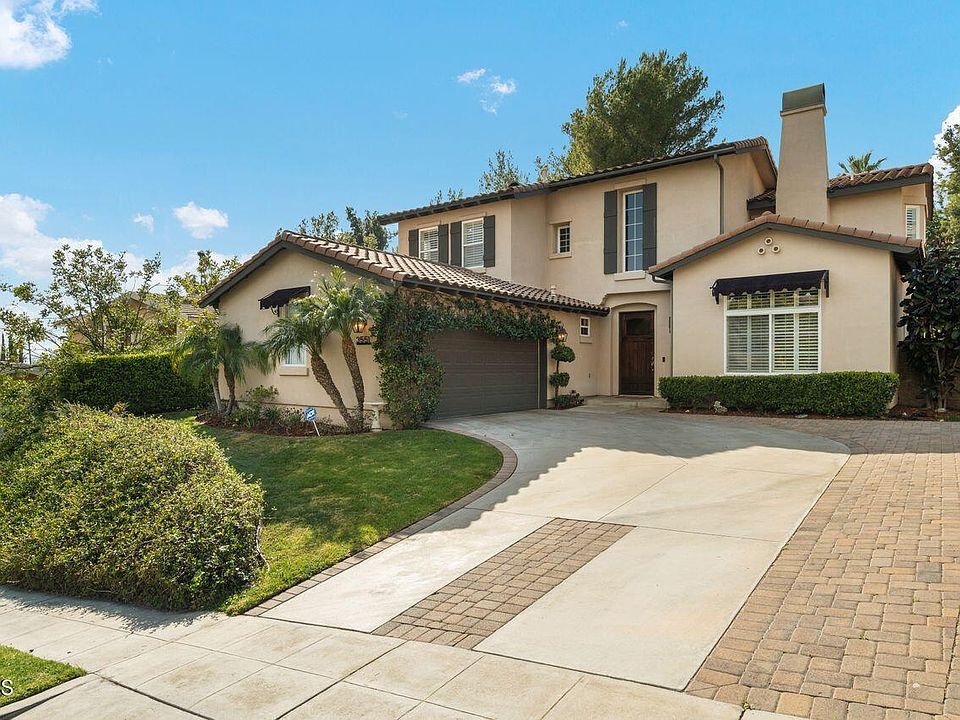 Welcome to Altadena's beautiful gated community of La Viña, where this four bedroom, three and a half bathroom home awaits. Enter through the front door into a two story chandeliered foyer with a spiral staircase. The living room features an elegant fireplace and opens into an airy formal dining room. The family room, boasting a second fireplace and custom entertainment center, flows into the kitchen, which hosts an expansive island and pantry. The four bedrooms include a convenient downstairs bedroom with an en-suite full bathroom. Upstairs, the spacious primary suite contains a deep closet and a beautifully remodeled en-suite bathroom with a glass shower enclosure and deep soaking tub. Find plenty of storage space throughout as well as a laundry room downstairs with garage access. Ample opportunities for entertaining include the private backyard, with a dining patio and lush, drought-conscious landscaping, as well as a community pool and playground, both located near the home.
