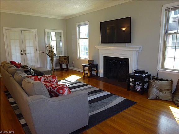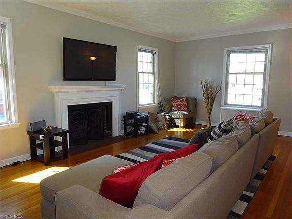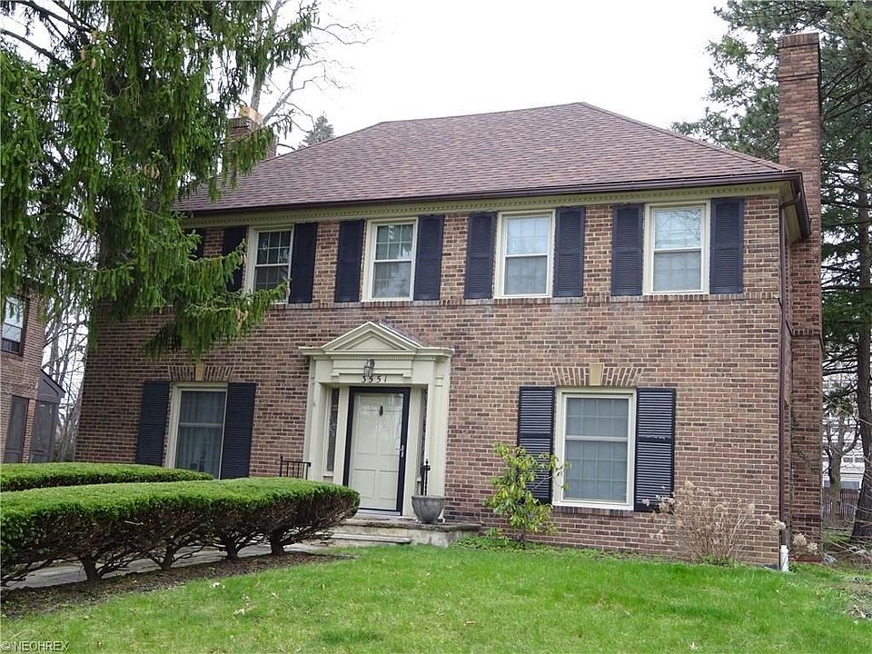 Pretty brick center hall Georgian close to the new Van Aken hub! The step down living room has hardwood floors and a wood burning fireplace. The spacious formal dining room features 2 built ins, hardwood floors and an updated light fixture. The large eat in kitchen is updated with stainless appliances, ceramic tile floors and has plenty of counter space and cabinets. A half bath completes the first floor. The master bedroom has a fireplace, ceiling fan, hardwood floors and a fabulous walk in closet. The master bath is private, has double sinks and a jetted tub. There are 2 other bedrooms on the second floor with ceiling fans and hardwood floors as well. There is an additional full bath on second. The third floor has a suite with a bedroom and bathroom with a claw foot tub, newer toilet and vanity-great guest or teen suite. The lower level has a finished space for a work out area, rec room or play room! The basement has been water proofed by Ohio State waterproofing and has a transferable warranty. The windows on the 1st and 2nd floor have been replaced with Anderson windows. Newer glass block windows in the basement, younger roof. The boiler was installed in 2013. Great access to 480 and 271. Minutes to the Cleveland Clinic, Case and University Circle!