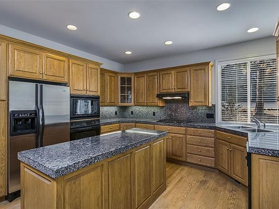 Custom home on private .46 acre lot. Open floor plan with hardwood floors throughout main living area. Great Room with vaulted ceiling, floor-to-ceiling stone fireplace & custom built-ins. Den with double glass doors. Kitchen with expansive cabinets, pull-outs, granite tile counters & island. Master Bedroom on main floor with access to private back deck. Master Bath featuring tile walk-in shower, jetted tub, tile counters & floor. 2 Bedrooms & full Bath upstairs. Laundry Room with built-ins. Triple Garage.