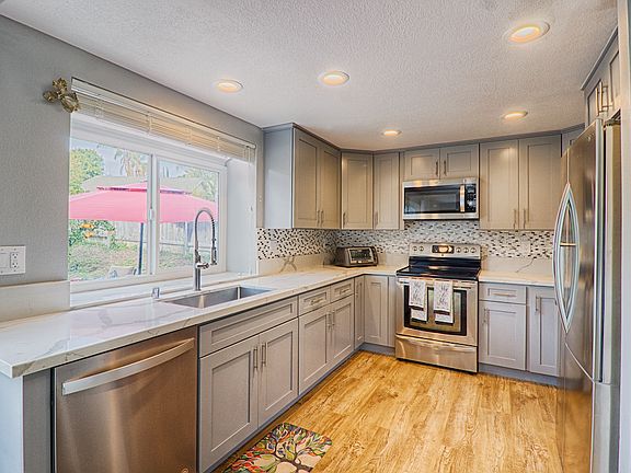This recently remodeled 5 Bedroom/3 full bath home located in the very desirable Sunset Hills neighborhood. Highly desirable bedroom downstairs with full bathroom. New highly upgraded kitchen with quartz counters, new cabinets, stainless steel appliances, tiled back splash and new laminate flooring. Features new roof, new A/C and furnace and upgraded electrical with separate 220amp for the Jacuzzi tub! This awesome home will not LAST!!! 8,885 SqFt lot with a huge backyard for Kids to play!!!