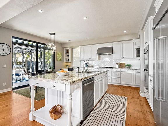 Experience refined living at 3551 Sitio Damasco, a meticulously crafted residence by Davidson Homes, offering approximately 3,890 sq ft of thoughtfully designed space. Situated on a generous lot at the end of a tranquil cul-de-sac, this home provides sweeping panoramic views. The interior seamlessly connects with the outdoors through expansive Fleetwood sliding doors, leading to a backyard oasis featuring a hot tub, artificial turf, putting green, and an outdoor fireplace—ideal for both relaxation and entertaining. The gourmet kitchen is equipped with a spacious butler’s pantry, catering to culinary enthusiasts. Additional highlights include a solar system with 30 Sharp panels (owned since 2008,) a Seer 18+ HVAC system installed less than a year ago, and refinished Larchwood flooring imported from Germany. A roll-up garage door added in 2021 offers convenient backyard access, and new gutters with downspouts installed in 2023 enhance functionality. Nature trails located directly behind the property provide opportunities for outdoor activities. The exterior was freshly painted in 2021, and the home has been diligently maintained to ensure comfort and style. This property combines thoughtful design, premium upgrades, and a unique location to offer an exceptional living experience. This is a Must See home!