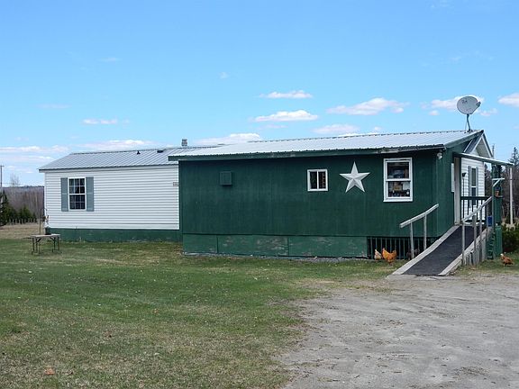 Country, Country on 33 acres. A bright, cozy 2000 2 bedroom, 1.5 bath mobile with large, addition which includes kitchen, mudroom and three season porch. The porch has a woodstove for rocking the seasons away and a deck for those sunny, lazy days of summer. Fully applianced kitchen with modern cabinetry and much counterspace plus a pantry. Open dining/living room plus 2 comfortable bedrooms. The home has been meticulously cared for in and out. There are 7 acres of open field and pasture bordered by evergreen trees and the balance of the land is woods. The established fenced in garden plot produces much of the household food. There are blueberry bushes and a native blackberry patch on the land. You will love the spacious 30x54 barn with 3 horse stalls, a workshop, equipment space and an easily accessed storage loft for the hay. There is a chicken coop with chickens and also a large equipment shed. The wooded acres has an extensive trail system with older beaver dam and log bridges over a beautiful brook. There is included in this sale an additional older mobile on its own designated acreage with septic system. It currently houses a gift shop but easily converted back to living quarters. Both homes command 360 degree views. You will enjoy the sunrises and sunsets. A grand spot with plenty of space for family and friends to play.