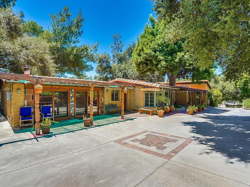 Nestled on a cul-de-sac, this very special adobe home is situated in a park-like setting with a mountain backdrop. The owners have lovingly enhanced this unique home with great care for over 30 years. Character is evident from the moment you step into this home and the rustic charm abounds from the original adobe brick walls, the wood beam ceilings and the tile flooring throughout. The tasteful living room includes a wood burning fireplace. Enjoy the outdoor views from the dining area adjacent to the kitchen which is enhanced with wood cabinetry, tile accents, a farmhouse sink, and a gourmet-inspired stainless steel range. There are a total of three bedrooms which all have ample closet and storage space. The master includes a skylight, a freestanding gas fireplace, and double sliding doors. The large enclosed sun room opens on to the patio and is perfect for indoor and outdoor entertaining. The exterior also features a shady wood deck, above ground spa, a fenced-in garden area, and abundant land and greenery. This quaint home has many unique and artistic details and plenty of opportunity for buyers to express their imagination.