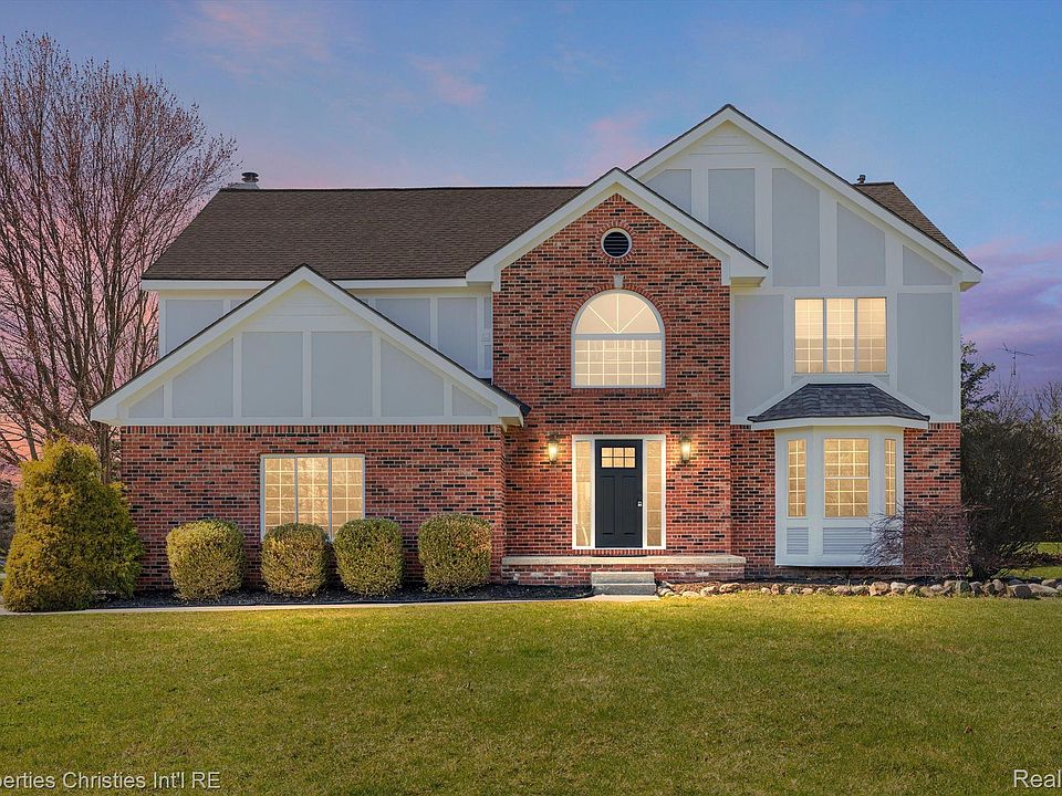 Brilliantly situated in an ideal location, this impeccably remodeled brick colonial is both impressive and comfortable - inspiring and convenient - light and bright - easy to live and easy to love. With just under 2700 move-in-ready space, you'll enjoy 4 generously sized bedrooms, 2.5 baths, a finished lower level, and 0.6 acres of outdoor space. Impeccably renovated with en eye on form and function, the kitchen boasts a massive center island with waterfall quartz countertops, stainless steel appliances, gas range, external vent hood, recessed and pendant lighting, and extensive soft close cabinetry. An open concept between the kitchen, dining room, and family room flows seamlessly with plenty of natural light. Stunning hardwood floors underfoot do not overshadow the extensive trim and coffered ceilings on the main level. Up a flight of hardwood stairs with wrought iron spindles, you'll find a massive primary suite with vaulted ceilings, entertainment hutch, huge walk-in closet, and a primary ensuite with dual sinks, standing rain shower, and soaking tub. The second level features 3 more generously sized bedrooms with large closets, a main bathroom with dual sinks, and a second floor laundry room. The lower level is another entertaining space with a kitchen with a bar, recreation room, and plenty of storage. Step outside onto your multi level deck, patio, and large private corner lot. With a two car garage and exmplory Lake Orion Schools, this home is a sure standout you'll enjoy for years to come. Welcome Home!