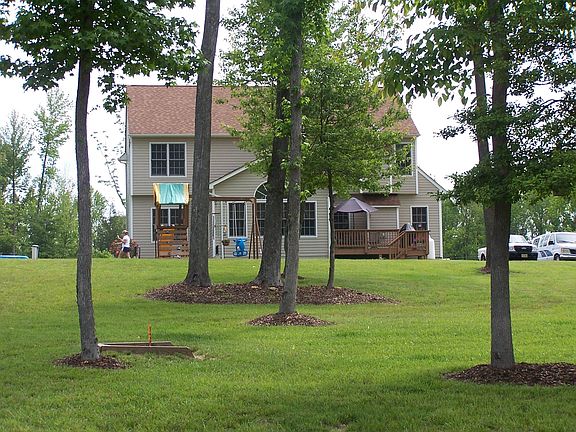4 br, 2 1/2 bth, 2 fireplaces, formal living room and dinning room. open floor plan, sunroom, deck, pole shed barn with 2 carports, 14 acres, groomed and with trails. large unfinished basement with walkout. Rainsoft water system. House is on well and septic.