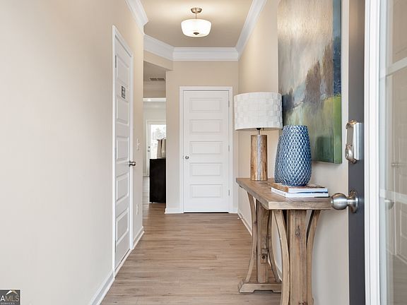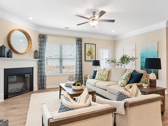The Ellison II plan, our most popular townhome floorplan, located in Smith Douglas Homes new Fairhaven at Preston community. This townhome ready in May 2024, features an open and functional loft-style layout. Greet guests from the long gracious foyer that leads to the spacious kitchen. The kitchen has upgraded cabinets, a pantry, LARGE center island, granite countertops, tile backsplash, stainless appliances and offers convenient access to the rear yard and patio. A beautiful linear fireplace is the focal point of the great room and adjacent dining area. Beautiful Vinyl Plank flooring throughout the main living area. Upstairs is the Owner's suite with a tray ceiling and bath complete with a spacious closet, tiled shower and water closet. Two Bedrooms, a shared full hall bath plus a convenient laundry room complete this level. Both floors have 9ft ceiling heights. Don't delay you still have time to personalize and make interior selections! Photos are representative of plan not of actual home being built. Smith Douglas Homes is the #1 Ranked private builder in the Atlanta area. Ask about Seller incentives with the use of preferred lender.