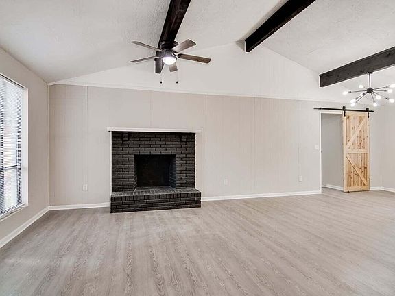 This remodeled, one-level brick home on a large corner lot has plenty of room and many upgrades to enjoy! High ceiling with beautiful exposed beams, open floor plan, new easy-care flooring, and so much more! This home can be used as 4 bedrooms or as 3 bedrooms with a bonus room, which has its own exterior entrance. Large fenced backyard!