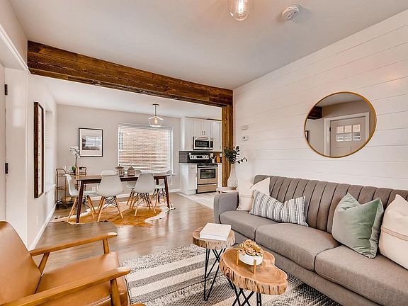 Totally remodeled 3 bed/2 bath bungalow in Clayton! Super cute with great curb appeal. Front Porch with new railing and beetle kill ceiling. Great open layout on the main level with shiplap, exposed beam, wood floors, new designer lighting, white shaker cabinets and quartz countertops. 2 bedrooms and large linen closet. The basement features a family/flex/media room and another Bedroom with ensuite bathroom. New systems - electrical, plumbing, furnace and A/C. New roof and sewer line. Large private back yard with 6 ft cedar fence on all sides with Sprinkler System. 1 car garage for parking and extra storage. Quiet Street in a great neighborhood. Great location! Walk 3 blocks to City of Nairobi Park, 4 blocks to Prodigy Coffee House, QDoba, and Starbucks and restaurants and a couple blocks to Park Hill Golf Course. Don't miss this one!