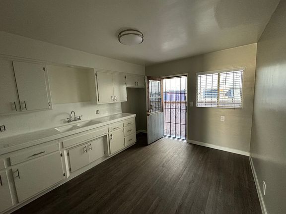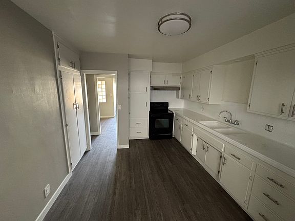 This 1-bed, 1-bath lower unit offers a clean and functional living space. The interior features smooth surface vinyl flooring, fresh paint throughout, and ceiling fans. The unit is equipped with a wall heater and does not have central heating or air conditioning. The kitchen includes an electric stove, freshly painted cabinets, and re-glazed countertops. The bathroom has been updated with a re-glazed tub. A back door provides access to the alley area. Additional features include access to community laundry facilities and a single-car garage space. The unit has been professionally cleaned and is ready to move.