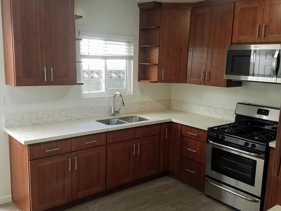 Available for showing after free application, immediate move-in. Tenant pays electric utility only. Recent remodel of California Heights home on charming tree-lined street. Approximately 800 sq ft with 2 bedrooms 1 bath and a private 225 sq ft back patio. Efficient layout with each room a comfortable size. This is the back unit of a duplex; homes are separate buildings and detached. One parking space and laundry in shared 2 car garage. Three minute walk to community park, coffee shop, and restaurants! -Newer kitchen includes new stainless steel gas stove built in microwave and quartz counter-tops -Small pets considered -Newer dual-pane windows throughout -Refreshed bathroom with newer tile floor, vanity, toilet and paint -Luxury vinyl plank flooring throughout -Dimmable LED recessed lighting -Ceiling fans in both bedrooms and living room, no AC. -One garage parking spot -Owner pays water, gas, sewer, trash, gardener. Tenant pays electric. Owner pays water, gas, sewer, trash, gardener.