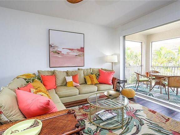 Location, privacy and technology - your slice of heaven awaits! FULL SEASON NOW AVAILABLE January thru April 2026! Perfectly situated, this top-floor 3rd-floor 2 bed/2 bath unit in Compass Point South is accessible via a common elevator and located within a 24-hour staffed, gated community. Ideal location just off Bayshore Road's restaurant corridor, adjacent to Naples Bay and minutes to downtown Naples' dining, shopping and entertainment. This unit has been updated and meticulously maintained by the owner and is comfortably and tastefully furnished featuring a large kitchen with stainless appliances and quartz countertops, full dining area, dedicated office area with full-size desk in high speed internet connection, a large gathering room area, and split bedroom areas for added privacy. A King bed is featured in the Primary bedroom, which also features a bay window, sitting area and a bathroom with both shower and separate soaking tub. The guest room is furnished with twin beds. All TVs are Roku enhanced, offering over 400 channels of entertainment. Full screen lanai is accessed from both the Primary bedroom and the living room and offers multiple views of a golf course fairway, a lake, or a morning sunrise. Because this unit faces East, you get a perfect start to your morning and total shade by mid afternoon, then temperate evenings - even in summer! Dedicated covered parking is also included with this rental. All Compass Point residents enjoy two heated swimming pools throughout the year. Take this opportunity to experience the Florida lifestyle to it's fullest!