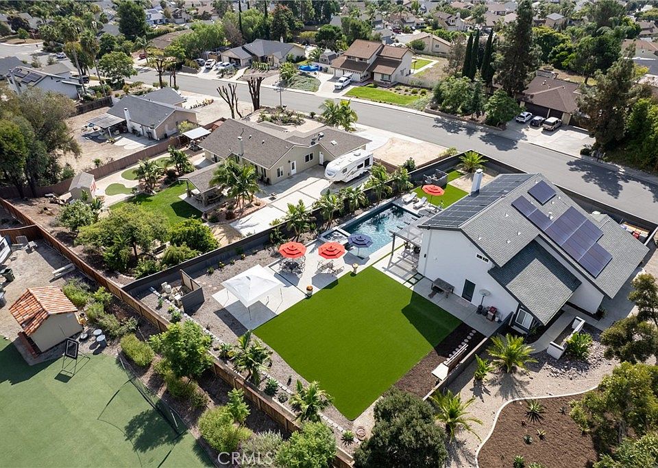 Relocation forces sale & quick $40,000 drop-RV parking or space for an ADU with this highly sought-after Sunset Hills home on a private .47-acre corner lot with stunning hilltop views. No HOA or mello roos. Completely remodeled open floor plan featuring a new kitchen with a gas Wolf stove, stainless steel appliances, and a spacious quartz island. New wood floors & stairs, baseboards, and gas hook up fireplace. Upgraded roof, and a new pebble tech saltwater pool (37 x 17) with spa and swim jet controlled with pentair app. Low-maintenance artificial turf in the backyard & an enormous front yard plus RV parking on the left side behind the fence. The owners planned ahead with a ready-to-use cement pad wired & plumbed for future outdoor kitchen installation or ADU. Outdoor shower and lush landscaping create a resort-like atmosphere. Solar panels added in 2022, including pool heating .Freshly professionally painted interior and exterior. RV or boat parking and ample space for an ADU or house addition. 3-car garage plus 5 + driveway parking. Convenient location near freeway access, Costco, restaurants, and just minutes from the beach. A unique property in the neighborhood. Enjoy the distant mountain views & a country feel minutes from all conveniences. Enjoy this showstopper with a massive statement tree in front with mature bird of paradise plants - Welcome to paradise 5 miles to the beach ! This home borders Vista & Carlsbad with good schools nearby ! Recently new Artificial turf on RV side, new tough shed , coffee bar, garage drywall & new closet doors finished this month but seller was relocated now.. Had accepted offer this last weekend but buyer couldn't do a bridge loan so canceled...seller may owner finance short term with a large down in leau of cont offers.