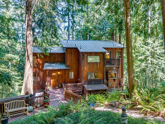 Retreat to your beautiful forest home! A timeless, architecturally diverse home with lush forest, wildlife & Tickle Creek running through the property. The home offers a living room, an alcove for study, updated kitchen with pecan cabinets. The dining room area walks out to the expansive deck for outdoor enjoyment. Retreat to your upper-level owner's suite & bathroom. Enjoy the upper deck for early morning coffee. Lower level features a family room & bedroom. Property offers a 36 X 31 shop.