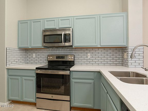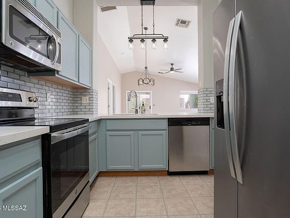Sitting directly above 80 acres of greenbelt creates an unobstructed view of the Tucson city lights and Rincon mountain ranges. Established neighborhood with no through traffic adds privacy and security. 2 blocks from an elongated river wash for jogging, exploring, and running with your puppies without seeing another soul. Living there feels like being in the free desert with grocery, restaurants, and hospital in less than a 3 mile drive, also close to I-10 for quickly getting anywhere. With updates galore: including refinished cabinets, stainless steel appliances, new quartz countertops, new toilets, water heater, roof, windows all resealed where needed, fresh paint throughout, and updated master bath, this home needs nothing but you! Priced to sell this home will not last!